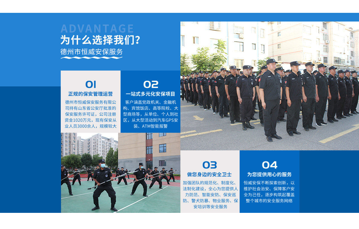 德州市恒威安保服務(wù)有限公司,注冊資金1020萬元。是經(jīng)山東省公安廳批準(zhǔn)、德州市工商管理局登記注冊、具有獨立法人資格的專業(yè)保安服務(wù)公司,下設(shè)10個職能科室和業(yè)務(wù)部...